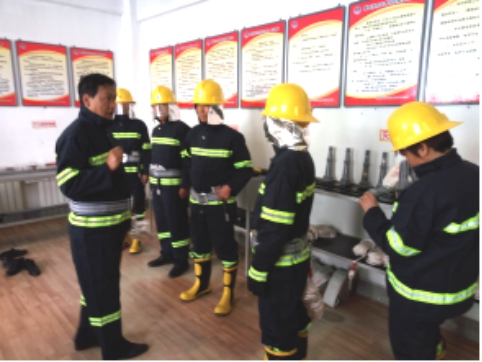 現(xiàn)場(chǎng)演示微型消防站防護(hù)用具的穿戴及使用方法,進(jìn)一步細(xì)化了滅火戰(zhàn)斗組、救援組各所屬人員的責(zé)任分工,并對(duì)各類防護(hù)、逃生、破拆工具的實(shí)際用途做了詳細(xì)的講解說明。